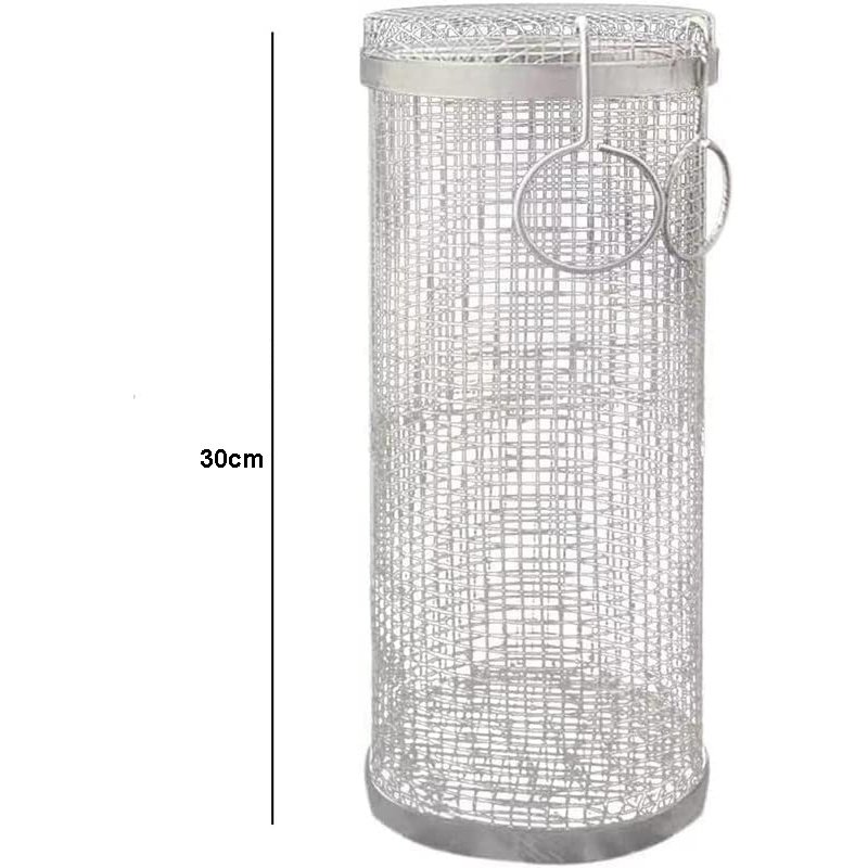 2.Perfect Rolling Grilling Basket - Just put the food in the bag, close the lid, and throw it on the grill. Perfect for both Gas, Electric, Charcoal grill, etc. Suitable for meat, hamburgers, French fries, steak, fish, shrimp, onions, pizza & even more.